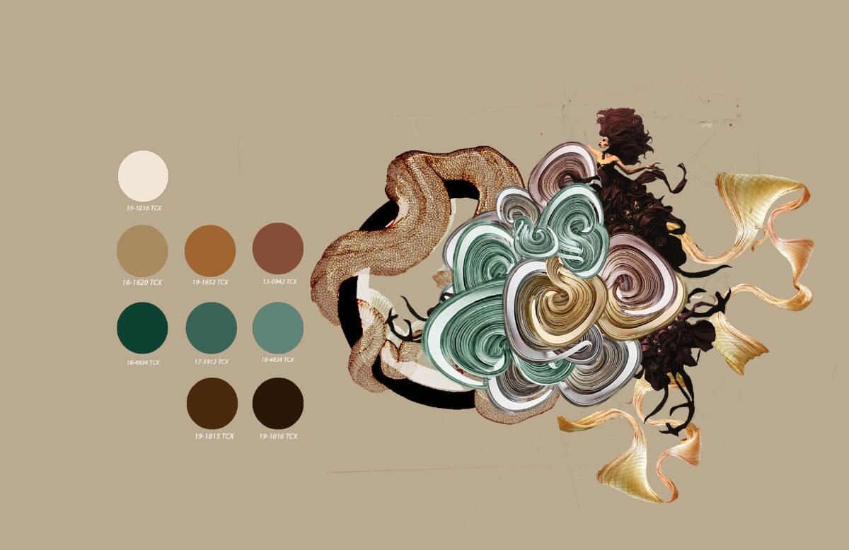 This collection emerges through carefully crafted boards—Theme Board, Mood Mystique, Colour Story, and Trend Forecasting—which together build the emotional and visual foundation of the project.