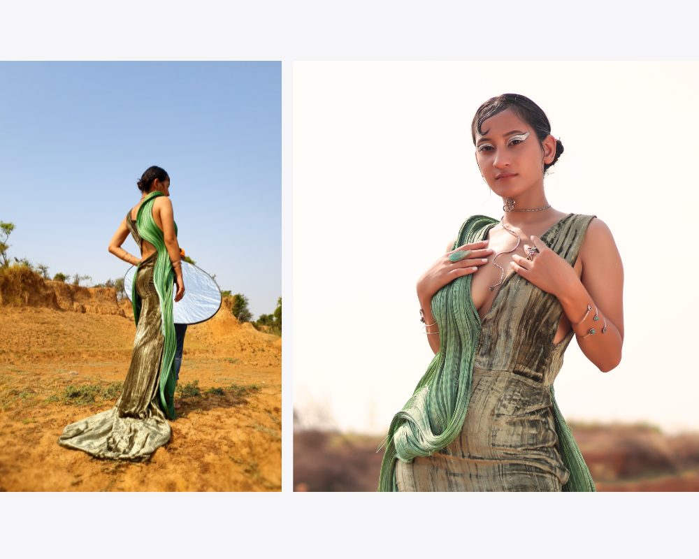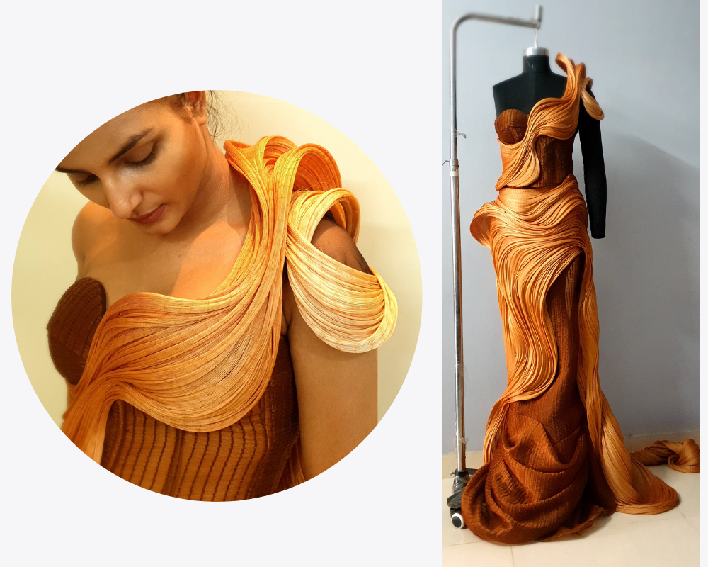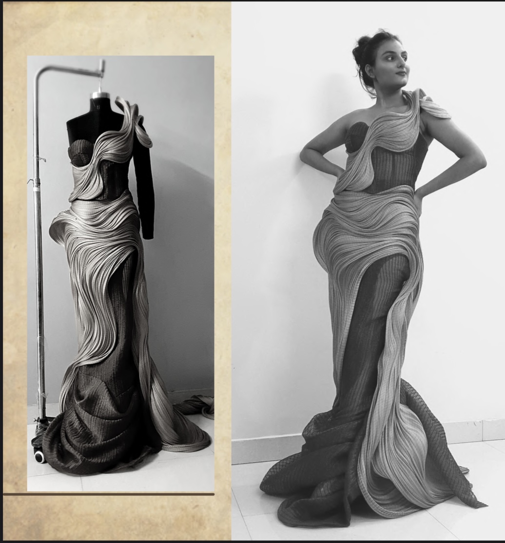 A collection shaped by the quiet power of alchemy—where humble materials evolve into elevated forms, and design becomes a meditation on change, symbolism, and identity. Each piece in this conceptual series is informed by research, fabric innovation, and a deep exploration of emotional and philosophical narratives.