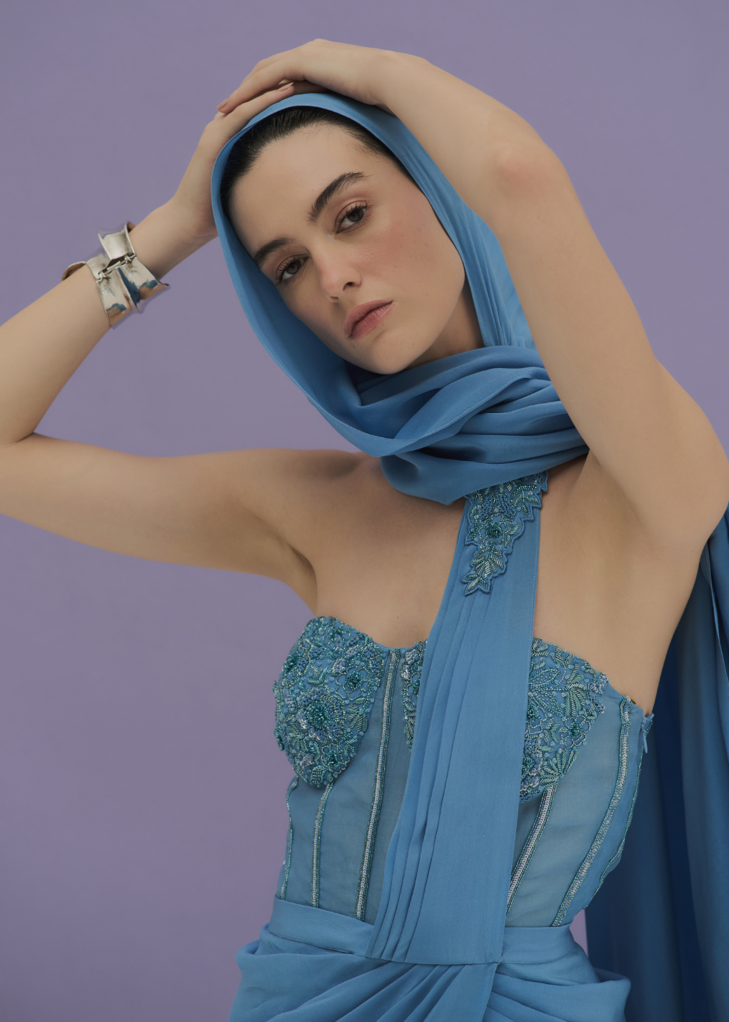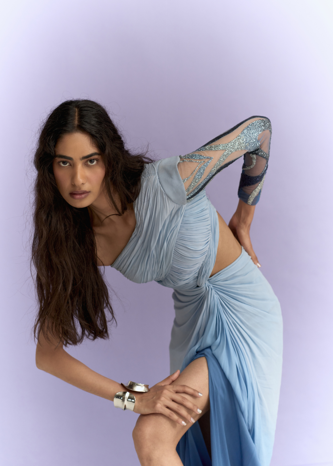 Collaboration with Tyohar Festive Modernity with Fluid Expression With Tyohar, I created pieces that celebrate contemporary festive wear—playful, elegant, and grounded in cultural resonance. My design contributions explored Festive silhouettesSoft drapes, fluid formsRefined ornamentationBalanced color storiesA synergy of tradition and minimalismMy work helped shape collections that feel expressive yet wearable—modern, meaningful, and visually cohesive. Ethereal Sculpted Poised Essence Becoming Poise Quietude Presence Enigmatic Alchemy